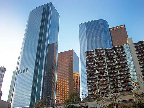 Dominiert wird die Skyline von Los Angeles ohne Frage durch die auf einem dreieckigen Grundriss erbauten Zwillingstürme des Finanzdienstleistungsunternehmens Wells Fargo. Die im Jahr 1983 von dem Architektenbüro Skidmore, Owings & Merrill entworfenen Türme zeichnen sich durch ihre aus poliertem braunen Granit gefertigten und mit getönten Fenstern durchbrochenen Fassaden aus. Um das strenge architektonische Erscheinungsbild aufzulockern, wurde der so genannte Court zwischen den Wolkenkratzern angelegt. Dieser kleine Garten ist von Glasmauern umgeben und beherbergt einige sehenswerte Skulpturen der Künstler Jean Dubuffet, Joan Miró, Louise Nevelson sowie Robert Graham.